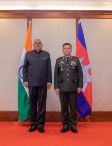 ឧត្តមសេនីយ៍ឯក ហ៊ុន ម៉ាណែត អញ្ជើញចូលជួបសម្តែងការគួរសមជាមួយអនុប្រធានាធិបតីឥណ្ឌា!