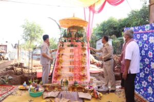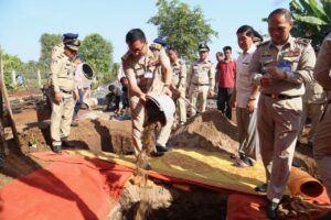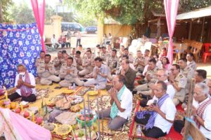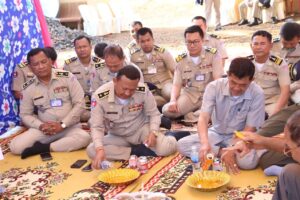 ខេត្តកំពង់ចាម ៖ នៅព្រឹកថ្ងៃទី០៦ ខែកុម្ភៈ ឆ្នាំ២០២៣ នេះ លោកឧត្ដមសេនីយ៍ត្រី ហេង វុទ្ធី ស្នងការនគរបាលខេត្តកំពង់ចាម បានអញ្ជើញ ជាអធិបតីក្នុងពិធីបញ្ចុះបឋមសិលា សាងសង់អាគារប៉ុស្តិ៍នគរបាលរដ្ឋបាលមេសរជ្រៃ នៃអធិការដ្ឋាននគរបាលស្រុកស្ទឹងត្រង់ ដែលមានទំហំទទឹង១១ម៉ែត្រ បណ្ដោយ៧ម៉ែត្រ នៅភូមិអូរលើ ឃុំមេសរជ្រៃ ស្រុកស្ទឹងត្រង់ ខេត្តកំពង់ចាម ។