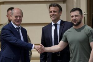 ប្រធានាធិបតីអ៊ុយក្រែនលោក Volodymyr Zelensky បានស្វែងរកការគាំទ្រផ្នែកយោធាបន្ថែមទៀតពីប្រទេសបារាំង និងអាល្លឺម៉ង់ ក្នុងជំនួបជាមួយលោក Emmanuel Macron និងអធិការបតីលោក Olaf Scholz នៅវិមាន Elysee កាលពីថ្ងៃពុធ ។