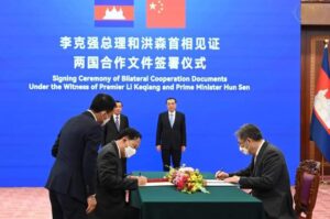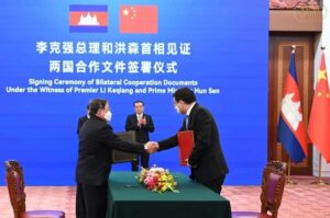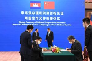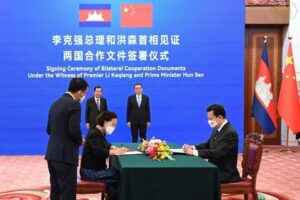 សម្តេចតេជោ ហ៊ុន សែន និងឯកឧត្តម នាយករដ្ឋមន្រ្តីចិន លី ខឺឈាង បានអញ្ជើញធ្វើជាសាក្សី នៃពិធីចុះហត្ថលេខាលើឯកសារ កិច្ចព្រមព្រៀងសំខាន់ៗចំនួន១២ ត្រូវបានចុះហត្ថលេខា នៅក្នុងដំណើរបំពេញទស្សនកិច្ចផ្លូវការរបស់ សម្តេចតេជោនាយករដ្ឋមន្រ្តី ទៅកាន់សាធារណរដ្ឋប្រជាមានិតចិន ក្នុងនោះរួមមាន ៖