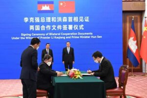 ១-កិច្ចព្រមព្រៀង ស្តីពីការពង្រឹងកិច្ចសហប្រតិ បត្តិការ ក្នុងការកសាងសហគមន៍វាសនារួម កម្ពុជា-ចិន នៅក្នុងយុគសម័យថ្មី រវាងក្រសួងការបរទេស និងសហប្រតិ បត្តិការអន្តរជាតិ នៃព្រះរាជាណាចក្រកម្ពុជា និងក្រសួងការបរទេសចិន ភាគីកម្ពុជាចុះហត្ថលេខាដោយឯកឧត្តម ប្រាក់ សុខុន ឧបនាយករដ្ឋមន្រ្តី រដ្ឋមន្រ្តីក្រសួងការបរទេស និងសហប្រតិបត្តិការអន្តរជាតិ ភាគីចិនចុះហត្ថលេខាដោយឯកឧត្តម ឈីន កាង(Qin Gang) រដ្ឋមន្រ្តីការបរទេស។