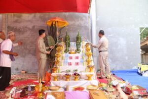 នៅព្រឹកថ្ងៃសុក្រ ទី១០ ខែមីនា ឆ្នាំ២០២៣នេះ លោកឧត្ដមសេនីយ៍ត្រី ហេង វុទ្ធី ស្នងការនគរបាលខេត្តកំពង់ចាម និងលោក ទុន ណេត អភិបាល នៃអភិបាលស្រុកស្ទឹងត្រង់ បានដឹកនាំលោក-លោកស្រី ស្នងការរង នាយការិយាល័យជំនាញ និងកម្លាំងអធិការដ្ឋាននគរបាលស្រុកស្ទឹងត្រង់ ចូលរួមក្នុងពិធីបញ្ចុះបឋមសិលា សាងសង់អាគារប៉ុស្តិ៍នគរបាលរដ្ឋបាលដងក្ដា នៃអធិការដ្ឋាននគរបាលស្រុកស្ទឹងត្រង់ ។