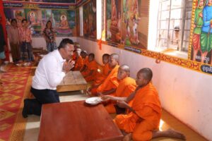 +នៅវត្ដវាលព្រះចំនួន ៤០មុឺនរៀល និងប្រគេនម៉ូទ័រប៉ូមទឹក ១គ្រឿងតម្លៃ ៦៧៦,៥០០រៀល។