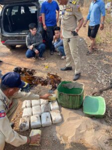 (ស្ទឹងត្រែង) ៖ ដោយអនុវត្តតាមបញ្ជា នាយឧត្ដមសេនីយ៍ សន្តិបណ្ឌិត នេត សាវឿន អគ្គស្នងការនគរបាលជាតិ និង លោក នាយឧត្ដមសេនីយ៍ ម៉ក់ ជីតូ អគ្គស្នងការរង ទទួលផែនប្រឆាំងបទល្មើសគ្រឿងញៀន និងក្រោមការបញ្ជាដឹកនាំផ្ទាល់ពី លោក ឧត្ដមសេនីយ៍ឯក ឃឹង សារ៉ាត់ នាយកមន្ទីរប្រឆាំងបទល្មើសគ្រឿងញៀន និងដោយមានការដឹកនាំសម្របសម្រួលពី ឯកឧត្ដម ជេត ខេមរា ព្រះរាជអាជ្ញា នៃអយ្យការអមសសាលាដំបូងខេត្តស្ទឹងត្រែង នៅថ្ងៃទី២៧ ខែមីនា ឆ្នាំ២០២៣ វេលាម៉ោង០៧និង០៥នាទី កម្លាំងជំនាញការិយាល័យផ្សព្វផ្សាយអប់រំ (ក៩) ដែលដឹកនាំដោយលោកឧត្តមសេនីយ៍ទោ យិន បញ្ញារិទ្ធ និង ការិយាល័យ BLO បានសហការជាមួយកម្លាំងនៃស្នងការដ្ឋាននគរបាលខេត្តស្ទឹងងត្រែង ធ្វើការបង្ក្រាបករណីជួញដូគ្រឿងញៀនឆ្លងដែនខុសច្បាប់ ពីប្រទេសឡាវ មកកម្ពុជា ត្រង់ចំណុច ស្ពានទី២ ភូមិអូរស្វាយ ឃុំអូរស្វាយ ស្រុកបុរីអូរស្វាយសែនជ័យ ខេត្តស្ទឹងត្រែង ។