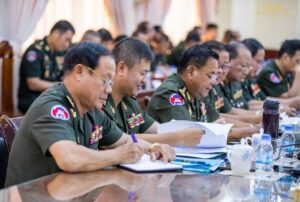 ឯកឧត្តម នាយឧត្តមសេនីយ៍ ហ៊ុន ម៉ាណែត អគ្គមេបញ្ជាការរង នៃកងយោធពលខេមរភូមិន្ទ មេបញ្ជាការកងទ័ពជើងគោក អញ្ជើញជាអធិបតីភាពដ៏ខ្ពង់ខ្ពស់ ក្នុងពិធីប្រកាសមុខតំណែងជូននាយទាហានជាន់ខ្ពស់ និងប្រជុំបូកសរុបលទ្ធផលការងារត្រីមាសទី១ និងទិសដៅត្រីមាសទី២ ឆ្នាំ២០២៣ របស់កងទ័ពជើងគោក នៃកងយោធពលខេមរភូមិន្ទ នាថ្ងៃទី០៦ ខែមេសា ឆ្នាំ២០២៣។