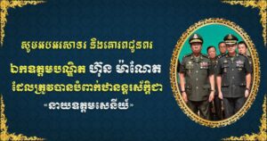 ឯកឧត្តម អ៊ុន ចាន់ដា សូមគោរពជូនពរឯកឧត្តម ហ៊ុន ម៉ាណែត ដែលត្រូវបានបំពាក់ឋានន្តរស័ក្តិជា នាយឧត្តមសេនីយ៍ !