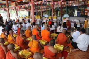 ប្រគេនទេយ្យវត្ថុ ដែលមានស្បៀងអាហារ គ្រឿងឧបភោគ-បរិភោគ និងសម្ភារៈប្រើប្រាស់ជាច្រើនមុខរបស់អ្នកឧកញ៉ា ព្រឹទ្ធមហាឧបាសិកាធម្មញ្ញាណវិវឌ្ឍនា ប៊ុន ស៊ាងលី ប្រគេនដល់ដល់វត្តចំនួន៥ នៅក្នុងខេត្តប៉ៃលិននេះ ដែលពិធីត្រូវបានធ្វើរួមគ្នានៅវត្តបុព្វារាម ស្ថិតនៅភូមិទួលខ្ពស់ ឃុំស្ទឹងត្រង់ ស្រុកសាលាក្រៅ ខេត្តប៉ៃលិន។