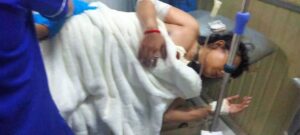ត្រូវគ្រាប់រងរបួសធ្ងន់ ត្រង់ចំណុចដេីមដោះខាងស្ដាំ ដោយក្បាលគ្រាប់បៀមជាប់ នៅក្រោមស្លាបប្រចៀវ បញ្ឆិតដេីមដៃ.!។