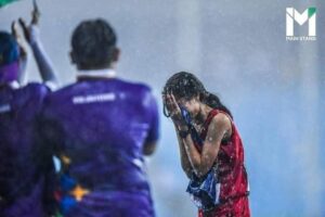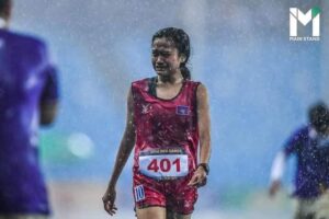 ភ្នំពេញ ៖ កីឡាការិនីរត់ប្រណាំង បូ សំណាង ព្យាយាមរត់ ៥គីឡូម៉ែត្រ ទាំងកំពុងធ្លាក់មេឃភ្លៀង ផ្គរ និងខ្យល់កន្ត្រាក់ខ្លាំង ដោយនាងមិនឈប់ឡើយ ទោះចាញ់គេច្រើនជុំក៏ដោយ នាងតស៊ូរហូតដល់ទី។