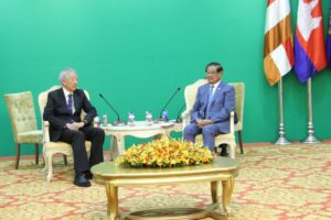 ភ្នំពេញ៖ នៅថ្ងៃទី០៩ ខែឧសភា ឆ្នាំ២០២៣នេះ សម្ដេចក្រឡាហោម ស ខេង នាយករដ្ឋមន្ដ្រីស្តីទី បានអនុញ្ញាតជូន ឯកឧត្តម ធាវ ឈី ហាន (TEO CHEE HEAN) ទេសរដ្ឋមន្រ្តី រដ្ឋមន្រ្តីសម្របសម្រួលសន្តិសុខ នៃសាធារណរដ្ឋសឹង្ហបុរី ចូលជួបសម្ដែងការគួរសម និងពិភាក្សាការងារ។