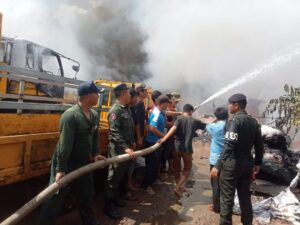 លោកឧត្តមសេនីយ៍ ហេង វុទ្ធី ដឹកនាំផ្ទាល់ចុះអន្តរាគមន៍ពន្លត់អគ្គីភ័យឆាបឆេះរោងស្នាក់នៅកម្មករសុិនទ្រី២៣គ្រួសារនៅស្រុកកំពង់សៀម!