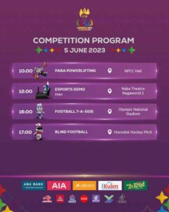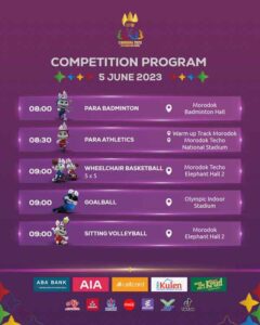 អាស៊ានប៉ារ៉ាហ្គេម ៖ កីឡាចំនួន១៤ប្រភេទ ត្រូវប្រកួតនៅថ្ងៃនេះ!