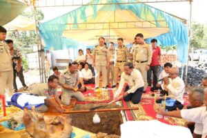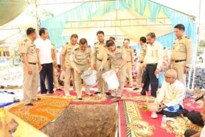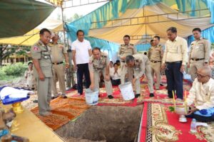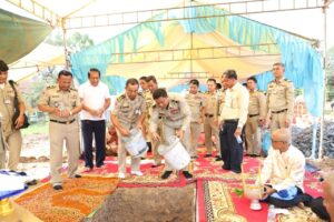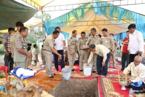 កំពង់ចាម ៖ នៅរសៀលថ្ងៃអង្គារ ទី០៦ ខែមិថុនា ឆ្នាំ២០២៣នេះ ខលោកឧត្តមសេនីយ៍ត្រី ហេង វុទ្ធី ស្នងការនគរបាលខេត្តកំពង់ចាម និងលោក អូត ឈាងលី អភិបាល នៃគណៈអភិបាលស្រុកជេីងព្រៃ បានចូលរួមក្នុងពិធីបញ្ចុះបឋមសិលា សាងសង់អាគារប៉ុស្តិ៍នគរបាលរដ្ឋបាលត្រពាំងគរ នៃអធិការដ្ឋាននគរបាលស្រុកជេីងព្រៃ ។ កម្មវិធីនេះដែរមានការអញ្ជេីញចូលរួមពី លោកប្រធានក្រុមប្រឹក្សាស្រុក លោកស្នងការរង នាយការិយាល័យជំនាញ លោក-លោកស្រី អធិការ-អធិការរង លោកនាយ-នាយរង រហូតដល់មន្រ្តីនៃប៉ុស្តិ៍នគរបាលរដ្ឋបាលត្រពាំងគរ ។