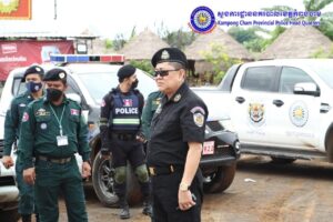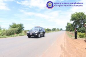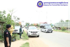 (កំពង់ចាម) ៖ នៅរសៀលថ្ងៃចន្ទ ទី០៤ ខែមេសា ឆ្នាំ២០២២ លោកឧត្តមសេនីយ៍ទោ ឯម កុសល ស្នងការនគរបាលខេត្តកំពង់ចាម បានដឹកនាំ និងចាត់តាំងកម្លាំងការពារសន្តិសុខ សណ្តាប់ធ្នាប់ រក្សាសុវត្ថិភាព តាមដងផ្លូវជូនប្រតិភូជាន់ខ្ពស់ អញ្ជេីញធ្វេីដំណើរត្រលប់វិញ ដែលឆ្លងកាត់ភូមិសាស្ត្រខេត្តកំពង់ចាម គិតពីព្រំប្រទល់ ស្រុកតាំងគោក ខេត្តកំពង់ធំ រហូតដល់ស្រុកមុខកំពូល ខេត្តកណ្ដាល ក្បួន (VVIP) មានក្បួនសម្ដេចអគ្គមហាសេនាបតីតេជោ ហ៊ុន សែន នាយករដ្ឋមន្រ្តីនៃព្រះរាជាណាចក្រកម្ពុជា និងក្បួនសម្ដេចក្រឡាហោម ស ខេង រដ្ឋមន្រ្តីក្រសួងមហាផ្ទៃ ៕