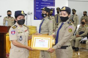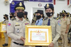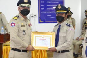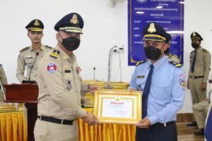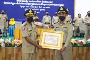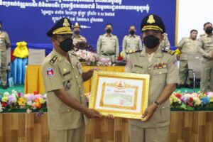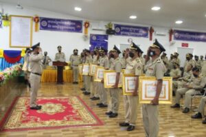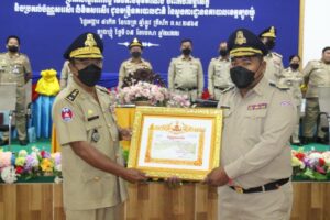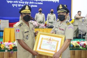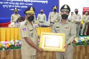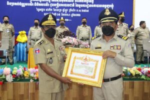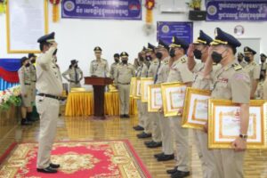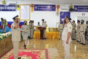 ពិធីប្រកាសផ្ទេរភារកិច្ចតែងតាំងមុខតំណែង បំពាក់ឋានន្ដរស័ក្ដិ និងប្រគល់ប័ណ្ណសរសេីរ លិខិតសរសេីរ ជូនមន្រ្ដីនគរបាលជាតិ