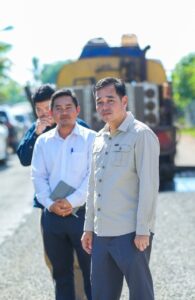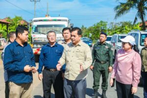 កំពង់ចាម ៖ លោក អ៊ុន ចាន់ដា អភិបាល នៃគណៈអភិបាលខេត្តកំពង់ចាម នៅព្រឹកថ្ងៃទី១៤ ខែកក្កដា ឆ្នាំ២០២៣នេះ បានដឹកនាំក្រុមការងារបច្ចេកទេស មន្ទីរអង្គភាពជំនាញ អាជ្ញាធរមូលដ្ឋាន និងមន្ត្រីពាក់ព័ន្ធ អញ្ជើញចុះពិនិត្យការដ្ឋានស្ថាបនាផ្លូវក្រាលកៅស៊ូDBST១ ខ្សែ និងផ្លូវបេតុង១ខ្សែ ដែលជាអំណោយដ៏ថ្លៃថ្លារបស់ លោកបណ្ឌិត ហ៊ុន ម៉ាណែត អគ្គមេបញ្ជាការរងខ.ភ.ម មេបញ្ជាការ កងទ័ពជើងគោក ដែលមានប្រវែង១២គីឡូម៉ែត្រ ឆ្លងកាត់ភូមិ ចំនួន៥ រួមមាន: ភូមិអូស្វាយ -ត្រពាំងកក់ ស្ថិតក្នុងឃុំអូរស្វាយ ជាផ្លូវក្រាលកៅស៊ូ២ជាន់ ប្រភេទDBST ប្រវែង៧ គីឡូម៉ែត្រ និងផ្លូវបេតុង ១ខ្សែ ប្រវែង ៥គីឡូម៉ែត្រ ឆ្លងកាត់ភូមិព្រែកគុយ -ល្ពាក និងភូមិស្រក ស្ថិតក្នុងឃុំស្រក ស្រុកកំពង់សៀម ខេត្តកំពង់ចាម។