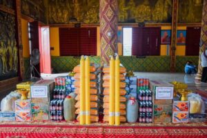ពិធីប្រគេនទៀនព្រះវស្សា និងទេយ្យទានដល់ព្រះសង្ឃបានធ្វើឡើងនៅវត្តចុងក្រូច ស្ថិតក្នុងឃុំរាប ដោយក្នុងមួយវត្តប្រគេន ទៀនវស្សា ០១គូ, ស្លាដក់ ០១, មី ០២កេសធំ, ត្រីខ ០២កេសធំ, អង្ករ ២០០គីឡូក្រាម, ទឹកក្រូច ០៥កេស, ទឹកត្រី ១០យួរ, តែ ០៥គីឡូក្រាម, ទឹកបរិសុទ្ធ ០៥កេស, ស្ករសរ ១០គីឡូក្រាម, ប្រេងម៉ាស៊ូត ៣០លីត្រ, ប្រគេនបច្ច័យព្រះសង្ឃ ៤សែនរៀល, ប្រគេនបច្ច័យកសាងវត្តបច្ច័យ ៩លានរៀល , និងជូនអាចារ្យ គណៈកម្មការវត្ត ក្នុងម្នាក់ ១០ម៉ឺនរៀល។