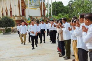 ខេត្តព្រៃវែង ៖ នាយឧត្តមសេនីយ៍ វង្ស ពិសេន ប្រធានក្រុមការងារចុះមូលដ្ឋានស្រុកពារាំង ខេត្តព្រៃវែង និងសហការី នៅព្រឹកថ្ងៃទី១៥ ខែកក្កដា ឆ្នាំ២០២៣ បានប្រគេនទៀនព្រះវស្សា និងទេយ្យទានមួយចំនួនដល់វត្តចំនួន ៩ នៅក្នុងស្រុកពារាំង ខេត្តព្រៃវែង។