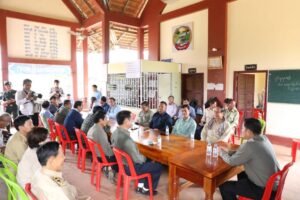 ក្នុងឱកាសនោះដែរ ឯកឧត្តម អភិបាលខេត្ត ក៏បានមានប្រសាសន៍ផ្ដាំផ្ញេីដល់អាជ្ញាធរមូលដ្ឋាន បន្ដខិតខំបម្រេីសេវាសំណូមពរពីប្រជាពលរដ្ឋឲ្យបានល្អប្រសេីរ និងឆាប់រហ័ស ព្រមទាំងជម្រុញនឹងផ្សព្វផ្សាយណែនាំដល់ប្រជាពលរដ្ឋក្នុងមូលដ្ឋានរបស់ខ្លួនអញ្ជើញទៅបោះឆ្នោត នីតិកាលទី៧ ថ្ងៃទី២៣ ខែកក្កដា ឆ្នាំ២០២៣ខាងមុខនេះ ឲ្យបានគ្រប់ៗគ្នា ៕
