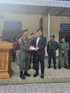 ជាមួយគ្នានេះ ឯកឧត្តម អគ្គស្នងការនគរបាលជាតិ ក៏បានឧបត្ថម្ភនូវថវិកាចំនួន៤លានរៀល និងគ្រឿងឧបភោគបរិភោគមួយចំនួនដូចជា មី១១កេស, ទឹកក្រូច ១៩កេស និងទឹកសុទ្ធ ៥០កេស ។