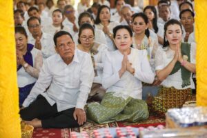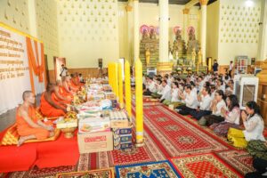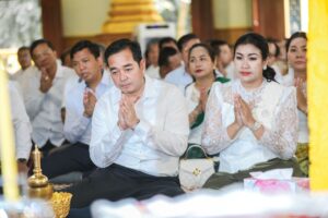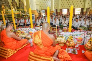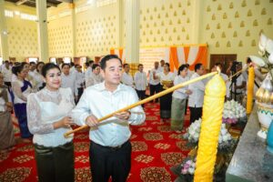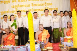 កំពង់ចាម ៖ នាព្រឹកថ្ងៃទី២ ខែសីហា ឆ្នាំ២០២៣ ឯកឧត្តម អ៊ុន ចាន់ដា អភិបាលនៃគណៈអភិបាលខេត្តកំពង់ចាម និងលោកជំទាវ ញូង ចរិយា អ៊ុន ចាន់ដា ប្រធានកិត្តិយសាខាសមាគមនារីកម្ពុជាដើម្បីសន្តិភាព និងអភិវឌ្ឍន៍ខេត្តកំពង់ចាម និងឯកឧត្តម ខ្លូត ផន ប្រធានក្រុមប្រឹក្សាខេត្ត ដោយមានការ អញ្ជើញចូលរួមពីសំណាក់ សមាជិកក្រុមប្រឹក្សាខេត្ត ថ្នាក់ដឹកនាំ មន្ត្រីរាជការសាលាខេត្ត ថ្នាក់ដឹកនាំមន្ទីរ អង្គភាពជុំវិញខេត្ត អាជ្ញាធរមូលដ្ឋាន មន្ត្រីពាក់ព័ន្ធ និងប្រជាពុទ្ធបរិស័ទយ៉ាងច្រើនកុះករ អញ្ជើញនាំយកទានចំណាំព្រះវស្សា រួមនិងទេយ្យទានមួយចំនួនធំ ប្រគេនដល់ព្រះសង្ឃគង់ចាំព្រះវស្សាអស់ត្រីមាស ចំនួន៤វត្ត រួមមាន: វត្តខេមវ័នបឹងស្នាយ វត្តបទមរតនៈដីដុះ វត្តសុទស្សនារាមជ្រោយថ្ម និងវត្តជោតនារាមបឹងកុក ក្រុងកំពង់ចាម ដែលពិធីនេះប្រព្រឹត្តទៅនៅវត្ត ខេមវ័នបឹងស្នាយ ៕