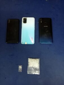 ករណីខាងលើសមត្ថកិច្ចយើងបាន ដកហូតវត្ដុតាងម្សៅក្រាមពណ៌ស សង្ស័យជាសារធាតុញៀនចំនួន០៦កញ្ចប់និងទូរសព្ទ័ចំនួន១១គ្រឿង។