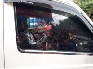 ក្រោយពេលកេីតហេតុភាគីទាំងសងខាងបានបញ្ជប់រឿងដោយភាគីខាងម៉ូតូចេញសងថ្លៃខូចខាតទៅម្ចាស់រថយន្តចំនួន30មុឺនរៀល( សាមសិបមុឺនរៀន ) ហើយក្រោយសម្រួលគ្នារួចរាល់នៅកន្លែងកើតហេតុម្ចាស់រថយន្តក៏បានធ្វើដំណើរបន្តទៅមុខបន្តទៀត។ លុះដល់មុខផ្ទះ ឈ្មោះ គ្រី ចំណុចផ្លូវកែងស្ថិតក្នុងភូមិស្វាយស្រណោះទី២ ឃុំ រកាអារ ស្រុក កងមាស ខេត្ត កំពង់ចាម ស្រាប់តែមានឈ្មោះ ញឹម ភារ៉ា( ហៅប៉ារ៉ា ) ភេទប្រុស អាយុ ២៦ ឆ្នាំ ជនជាតិ ខ្មែរ មានទីលំនៅ ភូមិ រកាអារ ឃុំ រកាអារ ស្រុក កងមាស ខេត្តកំពង់ចាមដែលត្រូវជាមិត្តភ័ក្តរបស់ឈ្មោះ ឡូត ប៊ុនឡុង បានយកដុំថ្មគប់មកលើកញ្ចក់រថយន្ដខាងមុខចំហៀងខាងស្ដាំ បណ្ដាលអោយបែកកញ្ចក់រថយន្តខាងស្ដាំនិងធ្លាយកញ្ចក់ឡានត្រូវថ្ពាល់ខាងស្ដាំរបស់ឈ្មោះ ប៉ុន គីមស្រេង ភេទស្រី អាយុ ២៣ ឆ្នាំ ដែលត្រូវជាប្រពន្ធរបស់ឈ្មោះ ស្រ៊ន ស៊ូហាន ជាម្ចាស់រថយន្ត។