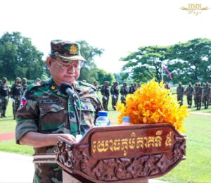 លោកឧត្តមសេនីយ៍ឯក ហ៊ុន ម៉ាណែត បានមានប្រសាសន៍ថា សូមចូលរួមអបអរសាទរចំពោះលទ្ធផលនៃវគ្គហ្វឹកហ្វឺនបំប៉នជំនាញភស្តុភារ, យន្តយុទ្ធថ្នាក់កងវរសេនាតូច-កងអនុសេនាធំ និងបណ្តុះបណ្តាលជំនាញបើកបររថយន្តធុនធ្ងន់នេះ ដែលបានដំណើរការអស់រយៈពេលជាច្រើនខែមក។ វគ្គហ្វឹកហ្វឺនទាំងនេះ ពិតជាបានឆ្លើយតបចំពោះសេចក្តីត្រូវការផ្ទាល់របស់យោធភូមិភាគទី៥ ក្នុងការពង្រឹង និងពង្រីកសមត្ថភាពជំនាញរបស់យោធិន ដើម្បីធានាបាននូវនិរន្តរភាពនៃការអនុវត្តភារកិច្ចលើការងារធានាឱ្យការត្រៀមប្រយុទ្ធ បម្រើប្រយុទ្ធ និងប្រយុទ្ធ ក៏ដូចជាសកម្មភាពការងារប្រចាំថ្ងៃ និងភារកិច្ចផ្សេងៗទៀតរបស់កងឯកភាព ដូចជាប្រតិបត្តិការសង្គ្រោះគ្រោះមហន្តរាយ ជាដើម និងសូមកោតសរសើរចំពោះសិក្ខាកាមទាំងអស់ ដែលបានខិតខំប្រឹងប្រែងយកចិត្តទុកដាក់ត្រងត្រាប់រៀនសូត្រ រហូតទទួលបានជោគជ័យបញ្ចប់វគ្គក្នុងពេលនេះ។ ជោគជ័យនេះ កើតចេញពីការពុះពារជម្នះនូវឧបសគ្គ និងការលំបាកគ្រប់បែបយ៉ាង ដែលនេះហើយ គឺជាមោទនភាពសម្រាប់សិក្ខាកាមបញ្ចប់វគ្គគ្រប់ៗរូប ហើយខ្ញុំក៏សង្ឃឹមយ៉ាងមុតមាំថា សិក្ខាកាមទាំងអស់នឹងប្រើប្រាស់ជំនាញ ចំណេះដឹង និងបទពិសោធន៍ទទួលបានពីវគ្គហ្វឹកហ្វឺននេះ សម្រាប់យកទៅអនុវត្តបំពេញរាល់ភារកិច្ចនៅតាមបណ្តាកងឯកភាពឱ្យទទួលបានជោគជ័យ និងកាន់តែមានប្រសិទ្ធភាពខ្ពស់ ក៏ដូចជាសម្រាប់កសាង និងអភិវឌ្ឍខ្លួនឱ្យមានសមត្ថភាពគ្រប់គ្រាន់ ដើម្បីទទួលរ៉ាប់រងរាល់ភារកិច្ចរបស់អង្គភាពនាពេលចំពោះមុខ និងតទៅអនាគត។