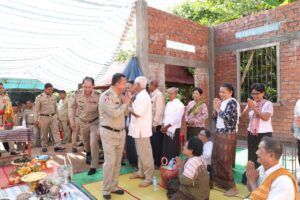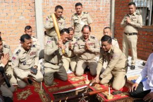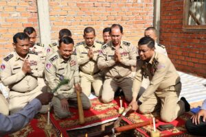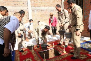 កំពង់ចាម ៖ នៅព្រឹកថ្ងៃព្រហស្បតិ៍ ទី០៧ ខែកញ្ញា ឆ្នាំ២០២៣នេះ លោកឧត្ដមសេនីយ៍ត្រី ហេង វុទ្ធី ស្នងការនគរបាលខេត្តកំពង់ចាម បានដឹកនាំថ្នាក់ដឹកនាំ នៃស្នងការដ្ឋាននគរបាលខេត្តកំពង់ចាម កម្លាំងអធិការដ្ឋាននគរបាលស្រុកស្ទឹងត្រង់ និងកម្លាំងប៉ុស្តិ៍នគរបាលរដ្ឋបាលអូរម្លូ រៀបចំពិធីបញ្ចុះបឋមសិលា សាងសង់អាគារថ្មី ប៉ុស្តិ៍នគរបាលរដ្ឋបាលអូរម្លូ ។