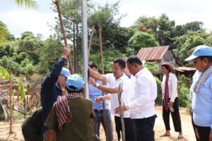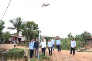 កំពង់ចាម ៖ នៅព្រឹកថ្ងៃអាទិត្យ ទី២៤ ខែកញ្ញា ឆ្នាំ២០២៣នេះ លោក ហេង វុទ្ធី សមាជិកអចិន្ត្រៃយ៍នៃគណៈកម្មាធិការគណបក្សខេត្ត អនុប្រធានក្រុមការងារថ្នាក់កណ្តាលចុះជួយស្រុកស្ទឹងត្រង់ និងជាប្រធានគណៈកម្មាធិការ ខ២៧ បានដឹកនាំក្រុមការងារចុះជួយឃុំអារក្សត្នោត និងឃុំទួលសំបួរ ចុះត្រួតពិនិត្យការរៀបចំបំពាក់អំពូលសូឡាបំភ្លឺផ្លូវ ចំនួន៣០ ស្ថិតក្នុងភូមិទួលសំបួរ និងភូមិស្រែអំពៅ ឃុំទួលសំបួរ ស្រុកស្ទឹងត្រង់ ។