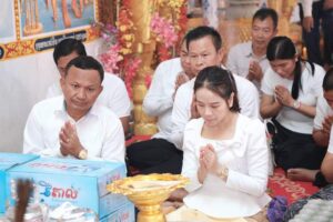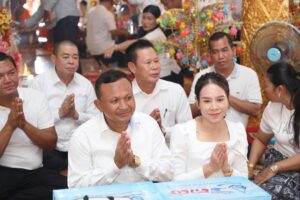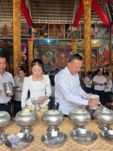 កំពង់ចាម៖ នាព្រឹកថ្ងៃចន្ទ ទី០៩ ខែតុលា ឆ្នាំ២០២៣ ពិធីកាន់បិណ្ឌទី១០ លោក ហេង វុទ្ធី ស្នងការនគរបាលខេត្តកំពង់ចាម និងក្រុមគ្រួសារ ព្រមទាំងសហការី បាននាំយកនូវចង្ហាន់ និងទេយ្យទាន ទៅប្រគេនដល់ព្រះសង្ឃគង់នៅវត្ដឥន្ទមុនីវ័ន ហៅវត្តស្រែអំពៅ ស្ថិតក្នុងភូមិស្រែអំពៅ ឃុំទួលសំបួរ ស្រុកស្ទឹងត្រង់ ដើម្បីឧទ្ទិសកុសល្យផលបុណ្យដល់ញាតិសន្ដានដែលបានចែកឋានទៅ។