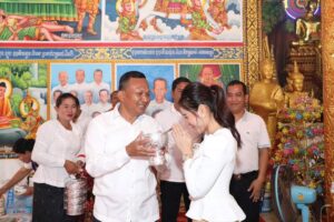 ស្នងការខេត្តកំពង់ចាមនិងសហការី នាំយកនូវចង្ហាន់ និងទេយ្យទាន ទៅប្រគេនដល់ព្រះសង្ឃគង់នៅវត្ដឥន្ទមុនីវ័ន ហៅវត្តស្រែអំពៅ!