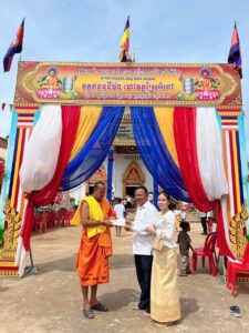 តាមរយៈការប្រគេនទេយ្យទានដល់ព្រះសង្ឃ ជូនបច្ច័យតាជី យាយជី បងប្អូនប្រជាការពារ សុទ្ធសឹងជាកំលាំងដ៏សទ្ធាជ្រះថ្លាពីខ្ញុំ និងក្រុមគ្រួសារ ព្រមទាំងការចូលរួមពីសហការី សរុបបច្ច័យចំនួន ៤,២១០,០០០រៀល បន្ថែមពីនេះទៀត ខ្ញុំក៏បានចូលរួមឧបត្ថម្ភសុីម៉ងចំនួន ៥តោន ស្មេីនឹង 575$ សម្រាប់ជួយសាងសង់វិហារបុណ្យ នៅវត្ដឥន្ទមុនីវ័ន ហៅវត្តស្រែអំពៅ ។
