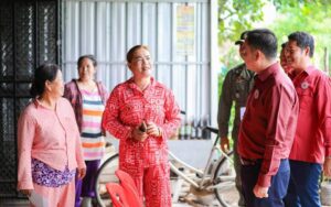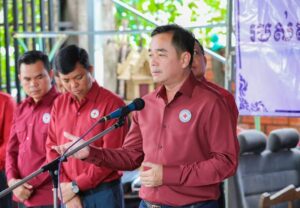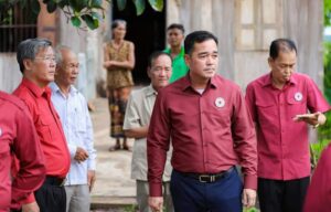 ខេត្តកំពង់ចាម ៖ នៅព្រឹកថ្ងៃព្រហស្បតិ ៦កើត ខែអាសាឍ ឆ្នាំរោង ឆស័ក ព.ស.២៥៦៨ ត្រូវនឹងថ្ងៃទី ១១ ខែកក្កដា ឆ្នាំ២០២៤ ឯកឧត្តម អ៊ុន ចាន់ដា អភិបាល នៃគណៈអភិបាលខេត្តកំពង់ចាម និងជាប្រធានគណៈកម្មាធិការសាខា កាកបាទក្រហមខេត្ត បានដឹកនាំក្រុមការងារ អញ្ជើញចុះជួបសួរសុខទុក្ខ និងនាំយកអំណោយមនុស្សធម៌ ជូនប្រជាពលរដ្ឋរងគ្រោះដោយខ្យល់កន្ត្រាក់ សរុប ១៦ គ្រួសារ រស់នៅក្នុងភូមិរអាងក្រោម ឃុំរអាង ស្រុកកំពង់សៀម ខេត្តកំពង់ចាម។