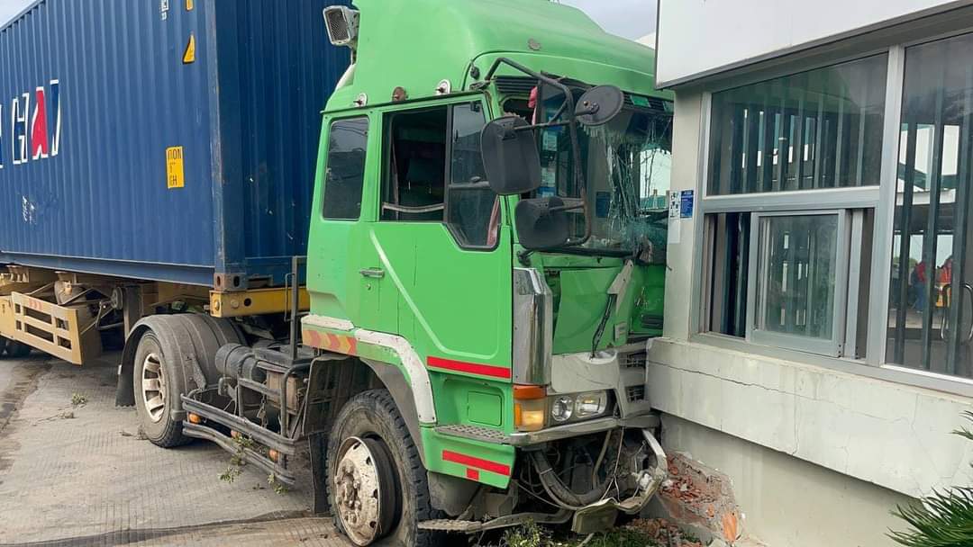 រថយន្តកុងតឺន័ររេចង្កូតបុក សួនច្បារចែកទ្រូងផ្លូវបន្តបុកប៉ុស្តិ៍យាមមួយកន្លែងទៀតរងការខូចខាត!