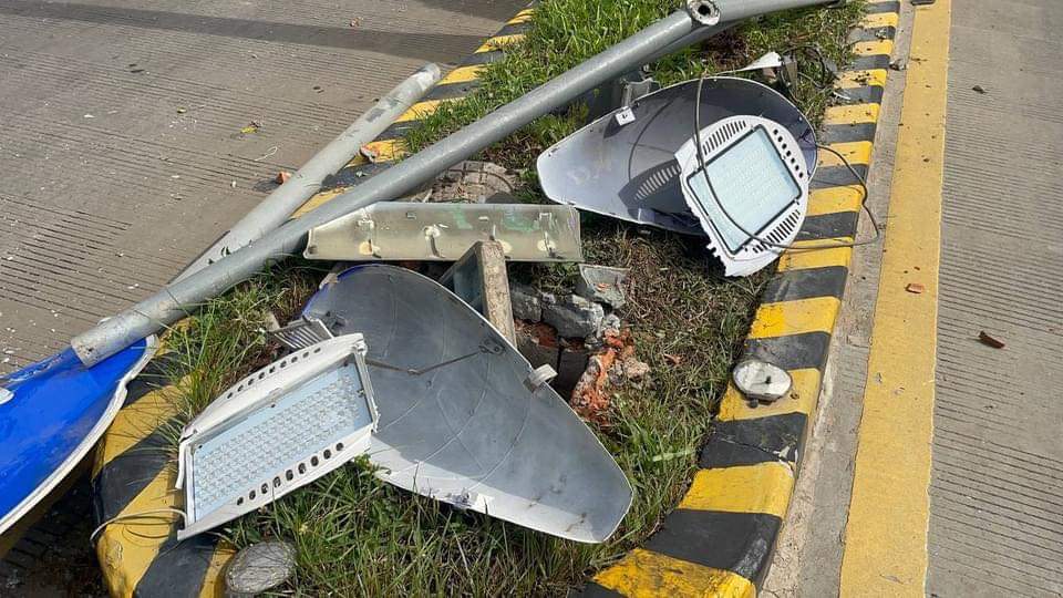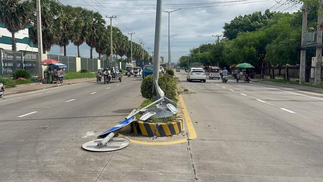 ភ្នំពេញ ៖ រថយន្តកុងតឺន័រមួយគ្រឿងបើកបរក្នុងល្បឿនលឿនគេចពីម៉ូតូខាងមុខជ្រុងទៅបុកសួនច្បារចែកទ្រូងផ្លូវនឹងបង្គាលភ្លេីងរួមទាំងស្លាកសញ្ញាបញ្ហាញផ្លូវហេីយរថយន្តមិនទាន់អស់ល្បឿនក៏បន្តទៅបុកប៉ុស្តិ៍យាមរបស់ក្រុមហ៊ុនមួយកន្លែងទៀតរងការខូចខាត។