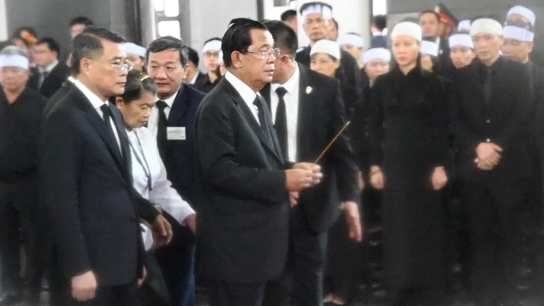 (ភ្នំពេញ)៖ នៅសាធារណរដ្ឋសង្គមនិយមវៀតណាម នាព្រឹកថ្ងៃទី២៥ ខែកក្កដាឆ្នាំ២០២៥។ សម្តេចអគ្គមហាសេនាបតីតេជោ ហ៊ុន សែន ប្រធានព្រឹទ្ធសភាជាតិ នៃព្រះរាជាណាចក្រកម្ពុជា និងជាប្រធានគណបក្សប្រជាជនកម្ពុជា បានអញ្ជើញនាំយកនូវកម្រងផ្កា គោរពវិញ្ញាណក្ខន្ធសព ឯកឧត្តម Nguyen Phu Trong អគ្គលេខាធិការបក្សកុម្មុយនិស្តវៀតណាម ដែលបានទទួលមរណភាព ដោយជរាពាធ ក្នុងជន្មាយុ ៨០ឆ្នាំ កាលពីរសៀលថ្ងៃទី១៩ ខែកក្កដា ឆ្នាំ២០២៤។