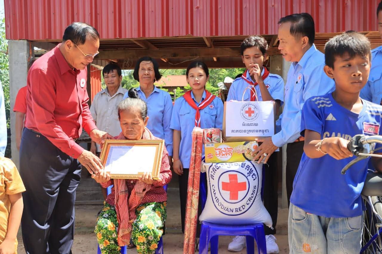 លោក ជឹម រតនៈ សមាជិកសាខាខេត្តអមដំណើរជាមួយ ឯកឧត្តម ឧកញ៉ា ជឹម សុខ អនុប្រធានគណៈកម្មាធិការសាខាខេត្ត តំណាង ឯកឧត្តម សួន សុម៉ាលីន ប្រធានគណៈកម្មាធិការសាខាខេត្ត បានដឹកនាំគណៈកម្មាធិការសាខា ប្រតិភូអមដំណើរ ក្រុមប្រតិបត្តិសាខា ក្រុមការងារអនុសាខាស្រុក ក្រុមកាកបាទក្រហមឃុំ អ្នកស្ម័គ្រចិត្តភូមិ ទីប្រឹក្សាយុវជន និងយុវជនកាកបាទក្រហមកម្ពុជា ចុះសួរសុខទុក្ខ ប្រគល់ផ្ទះ ចំនួន ២ខ្នង ទំហំ ៤មx៦ម ធ្វើអំពីឈើ ដំបូលប្រក់ក្បឿងជ័រ ជញ្ជាំងជ័រ និងបង្គន់អនាម័យ ចំនួន ២ ក្នុងផែនការឆ្នាំ២០២៥ ជាអំណោយរបស់សាខាខេត្ត ជូនដល់គ្រួសាររងគ្រោះដោយសារភ្លើងឆេះផ្ទះ ១គ្រួសារ នៅឃុំព្រៃពោន និងគ្រួសារក្រីក្រ ១គ្រួសារ នៅឃុំអន្សោង ក្នុងស្រុកកំពង់ត្របែក ខេត្តព្រៃវែង។