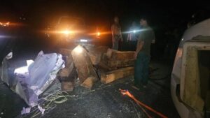 ប្រភពព័ត៌មានបានបង្ហើបឲ្យដឹងថា នៅមុនពេលកើត ហេតុ គេបានឃើញរថយន្តឃ្លុប ១គ្រឿង បានបើកបោះពួយក្នុងទិសដៅពីជើងមកត្បូងក្នុងល្បឿនយ៉ាងលឿន។ លុះមកដល់ចំណុចកើតហេតុខាងលើ គេបាន ឃើញរថយន្តនោះបែកកង់ក្រោយ នៅផ្នែកខាងឆ្វេង ហើយបានប្រាស់ខ្លួនដេកទៅខាងស្តាំដៃ ខណៈនោះ គេបានឃើញឈើជ្រុងជាច្រើនដុំ ខ្ទាតចេញមកខាងក្រៅរថយន្ត ធ្លាក់រាយប៉ានៅលើចិញ្ចើមផ្លូវ ដែលឈើទាំង នោះ គេបានរាប់ឃើញថា មានចំនួន ២១ដុំ ជាប្រភេទឈើសុក្រំជ្រុង។