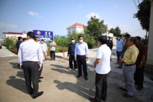(កំពង់ចាម) ៖ នៅរសៀលថ្ងៃទី១៨ ខែមេសា ឆ្នាំ២០២២នេះ ឯកឧត្តម អ៊ុន ចាន់ដា អភិបាលនៃគណអភិបាលខេត្តកំពង់ចាម អមដំណើរដោយមន្ត្រីពាក់ព័ន្ធ បានអញ្ជើញចុះពិនិត្យការស្ថាបនាផ្លូវបេតុងមួយចំនួនក្នុងសង្កាត់បឹងកុក ក្រុងកំពង់ចាម ដែលក្នុងនោះផ្លូវបេតុងនៅភូមិឡឥដ្ឋចំនួន២ខ្សែ ប្រវែងសរុប ១៦៥២ម៉ែត្រ ទទឹង៧ម៉ែត្រ ផ្លូវបេតុងក្នុងភូមិថ្មគោលចំនួន២ខ្សែ ខ្សែទី១ ប្រវែង១៩៩ម៉ែត្រ ទទឹង៧ម៉ែត្រ ខ្សែទី២ប្រវែង៦៤៥ម៉ែត្រ ទទឹង៦ម៉ែត្រ ។ បេីគិតជាប្រវែងផ្លូវសរុប ចំនួន២៤៩៦ ម៉ែត្រ ស្មើនឹងក្រឡាផ្ទៃ ចំនួន ១៦,៨២៧ ម៉ែត្រការ៉េ។