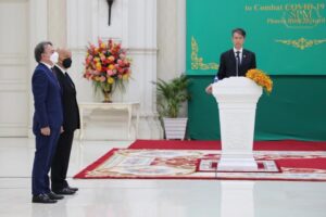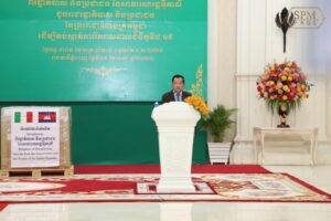 ពិធីប្រគល់ទទួលអំណោយវ៉ាក់សាំងនេះ ត្រូវធ្វើឡើងនៅវិមានសន្តិភាព ដោយមានការចូលរួមពីអគ្គរដ្ឋទូតនៃប្រទេសអ៊ីតាលីប្រចាំនៅកម្ពុជាផងដែរ។ ឯកអគ្គរដ្ឋទូតអ៊ីតាលីប្រចាំនៅព្រះរាជាណាចក្រកម្ពុជា បានអបអរសាទរចំពោះប្រទេសកម្ពុជាដែលទទួលបាននូវភាពជោគជ័យចំពោះការទប់ស្កាត់ការចម្លងរាលដាលនៃជំងឺ Covid 19 ។ ប្រទេស អ៊ីតាលី ពិតជារីករាយក្នុងការផ្ដល់នូវអំណោយវ៉ាក់សាំងនេះ ដើម្បីរួមចំណែកជាមួយកម្ពុជាក្នុងការទប់ស្កាត់ការចម្លងជំងឺកូវីដ19 បន្ថែមទៀត ជាពិសេសក្នុងការចាក់វ៉ាក់សាំងដូសជំរុញជូនដល់ប្រជាពលរដ្ឋកម្ពុជា។