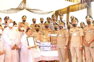 ក្នុងឱកាសដ៍ក្រៀមក្រំនោះដែរ លោកឧត្តមសេនីយ៍ ឯម កុសល ក៍បាននាំយកបច្ច័យ និងគ្រឿងឧបភោគបរិភោគដ៍ជ្រះថ្លារបស់ឯកឧត្ដម នាយឧត្តមសេនីយ៍ សន្តិបណ្ឌិត នេត សាវឿន អគ្គស្នងការនគរបាលជាតិមាន ថវិកាចំនួន ៦,០០០,០០០ រៀល អង្ករ០១បេ(៥០គីឡូក្រាម) ទឹកក្រូច០៤កេស មី០២កេស ទឹកសុទ្ធ០២កេស ម៉ាស់៨ប្រអប់ ដេីម្បីចូលរួមក្នុងពធីបុណ្យសព ដែលសរុបជាបច្ច័យរួម ចំនួន ៦,៣០០,០០០រៀល ។