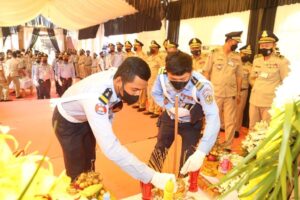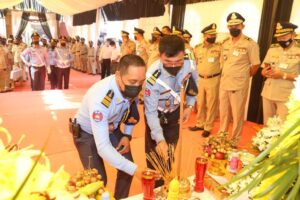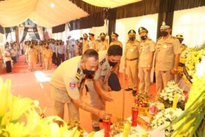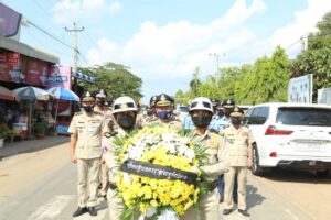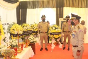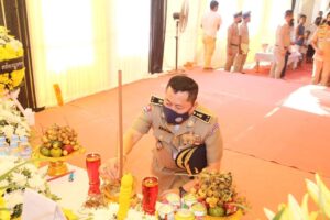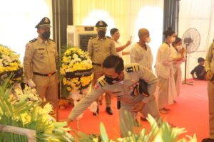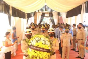 (កំពង់ចាម) ៖ នារសៀលថ្ងៃ២៦ ខែមេសា ឆ្នាំ២០២២ នេះ ឧត្តមសេនីយ៍ទោ ឯម កុសល ស្នងការនគរបាលខេត្តកំពង់ចាម បានដឹកនាំ លោក-លោកស្រី ស្នងការរង នាយការិ.ជំនាញ លោកអធិការនគរបាលស្រុក និងមន្រ្តីនគរបាល នៃស្នងការដ្ឋាននគរបាលខេត្ត បាន ចូលរួមគោរពវិញ្ញាណក្ខន្ធសព និងបំពាក់ឋានន្តរស័ក្តិ ជាកិច្ចបច្ឆាមរណៈថ្នាក់វរសេនីយ៍ទោ ជូនសពលោកវរសេនីយ៍ត្រី ទឹម សុធា នាយប៉ុស្តិ៍នគរបាលរដ្ឋបាលកោះរការ នៃអធិការដ្ឋាននគរបាលស្រុកកំពង់សៀម ដែលបានទទួលមរណៈភាព កាលពីយប់ថ្ងៃអាទិត្យ ទី២៤ ខែមេសា ឆ្នាំ២០២២ វេលាម៉ោង ០២:១៣នាទីយប់ ក្នុងជន្មាយុ ៥២វស្សា ដោយពលីក្នុងពេលបំពេញបេសកកម្មការងារជួបឧបទ្ទវហេតុគ្រោះថ្នាក់ចរាចរណ៍ ។