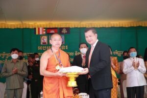 ឯកឧត្តម អភិបាលខេត្ត បានមានប្រសាសន៍បន្តថា ព្រះរាជាណាចក្រកម្ពុជា គឺបានអភិវឌ្ឍន៍គ្រប់វិស័យ ទាំងពុទ្ធចក្រ និងអាណាចក្រ ដោយបានចាត់ទុកពុទ្ធចក្រ និងអាណាចក្រ គឺជាកង់ទាំងគូរសម្រាប់ទ្រទ្រង់ជាតិ និងនាំជាតិឆ្ពោះទៅកាន់វឌ្ឍនភាព ដែលមិនអាចខ្វះកង់ចក្រមួយណាបានឡើយ ទោះបីជាបច្ចុប្បន្នវិស័យអប់រំខាងអាណាចក្រមានការីកចម្រើន ក៏នៅតែត្រូវការខាងពុទ្ធចក្រ ប្រៀបដូចជាជើងឆ្វេង និងជើងស្តាំ សម្រាប់ទ្រទ្រងដងខ្លួនទាំងមូល បើយើងក្រឡេកមើលពីអតីតកាលវិស័យពុទ្ធចក្រ បានដើរតួនាទីយ៉ាងសំខាន់ក្នុងការបណ្តុះបណ្តាលធនធានមនុស្ស។ ដូចនេះ យើងអាចនិយាយបានថា វិស័យពុទ្ធចក្រ គឺជាប្រភពនៃការអប់រំ និងជាកំលាំងចលករ ដែលមិនអាចខ្វះបាន តួយ៉ាងសមិទ្ធិផលនានា មានជាអាទិ៍វត្តអារាម និងសមិទ្ធផលនានាជា