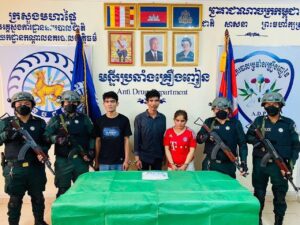 (ភ្នំពេញ) ៖ នាល្ងាចថ្ងៃទី១៦ ខែឧសភា ឆ្នាំ២០២២ ជនសង្ស័យ ៣នាក់ និង គ្រឿងញៀនជិត ១ គីឡូក្រាម ត្រូវបានបញ្ជូនខ្លួនទៅកាន់សាលាដំបូងរាជធានីភ្នំពេញ ដើម្បីចាត់ការតាមនិតិវិធី ។