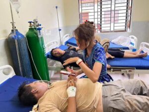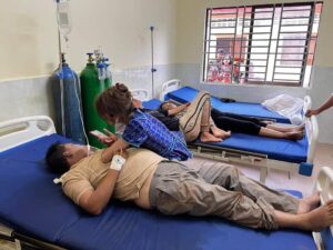 ចំណែកតារាចំរៀងនិងប្អូនប្រុសកំពុងសង្គ្រោះបន្ទាន់នៅមន្ទីរពេទ្យបង្អែក ១៦មករា ខេត្តព្រះវិហារ កាលពីរសៀលថ្ងៃទី១៧ ខែឧសភា ឆ្នាំ២០២២។ ។