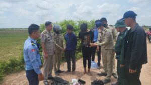 ព្រៃវែង៖ កម្លាំងនគរបាលស្រុកកំពង់ត្របែក ក្រោមការដឹកនាំបញ្ជាផ្ទាល់ពីលោកវរសេនីយ៍ឯក សួន សំអឿន អធិការនគរបាលស្រុកកំពង់ត្របែក តាមប្រម៉ាញ់ឃាត់ខ្លួនបានមុខសញ្ញាជនសង្ស័យឆក់កាបូប ដែលបានធ្វើសកម្មភាពបានចំនួន០២នាក់ រហូតដល់ភូមិព្រៃក្តួច ឃុំឈេីកាច ស្រុកបាភ្នំ ខេត្តព្រៃវែង។ ហេតុការណ៍នេះ បានកើតឡើងកាលពីព្រឹកថ្ងៃទី ១៦ ខែ ឧសភា ឆ្នាំ២០២២ វេលាម៉ោង ១១ និង៣០នាទី ដោយមានករណីឆក់កាបូបមួយ កេីតឡេីងនៅលេីដកផ្លូវជាតិលេខ១ ចន្លោះគីឡូរម៉ែត្រលេខ ៩៣-៩៤ ស្ថិតក្នុងភូមិជ្រលង ឃុំប្រាសាទ ស្រុកកំពង់ត្របែក។