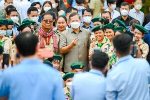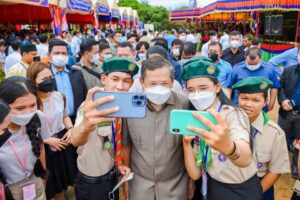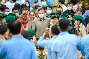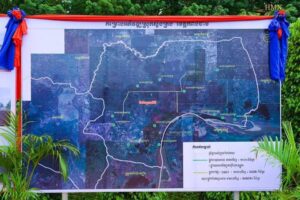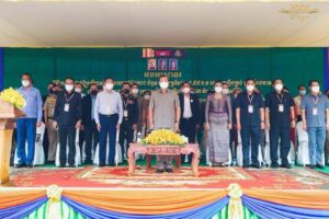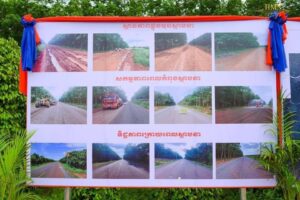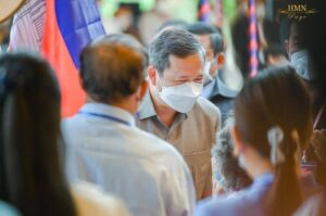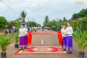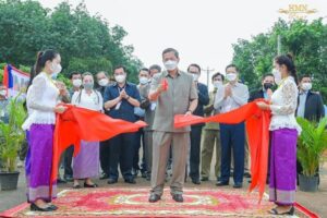 (កំពង់ចាម)៖ក្នុងពិធីសម្ពោធដាក់ឲ្យប្រើប្រាស់ផ្លូវក្រាលកៅស៊ូ DBST ចំនួន ៥ ខ្សែប្រវែង ២៧,៩៧ គីឡូម៉ែតនៅភូមិជ្រៃហាយ ឃុំដងក្តារ ស្រុកស្ទឹងត្រង់ ខេត្តកំពង់ចាម នៅថ្ងៃទី២០ ខែឧសភា ឆ្នាំ២០២២ ឯកឧត្តម បណ្ឌិត ហ៊ុន ម៉ាណែត តំណាងដ៏ខ្ពង់ខ្ពស់របស់សម្តេចអគ្គមហាសេនាបតីតេជោ ហ៊ុន សែន និងសម្តេចកិត្តិព្រឹទ្ធបណ្ឌិត ប៊ុន រ៉ានី ហ៊ុនសែន
