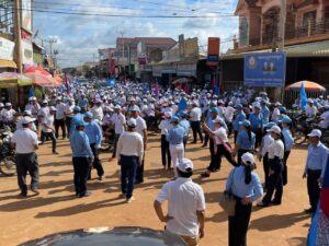 (កំពង់ចាម) ៖ នៅថ្ងៃទី២១ ខែឧសភា ឆ្នាំ២០២២ លោក ហេង វុទ្ធី ប្រធានក្រុមការងារចុះជួយឃុំអារក្សត្នោត , លោកអនុប្រធានក្រុមការងារ និង សហការី បានដឹកនាំសមាជិកគណបក្សប្រជាជនកម្ពុជា តាមបណ្តាភូមិទាំង៥ ក្នុងឃុំអារក្សត្នោត ស្រុកស្ទឹងត្រង់ ខេត្តកំពង់ចាម ដង្ហែរក្បួនបើកយុទ្ធនាការឃោសនាបោះឆ្នោត ក្រុមប្រឹក្សាឃុំសង្កាត់ អាណត្តិទី៥ នៅក្នុងមូលដ្ឋានឃុំអារក្សត្នោត ស្រុកស្ទឹងត្រង់ ដែលមានសមាជិកចូលរួមដង្ហែរក្បួន សរុបចំនួន១០៤៤នាក់ (ស្រី៣៥៧នាក់ មធ្យោបាយម៉ូតូចំនួន៥៣៨គ្រឿង និងរថយន្តចំនួន៩១គ្រឿង) រួមមាន ÷