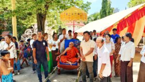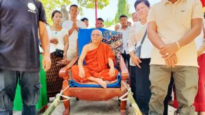 បន្ទាប់មក នៅវេលាម៉ោង ១ រសៀលថ្ងៃដដែល ក្នុងឱកាសដ៏មហាមឡារឬទ្ធិនៃពិធីបុណ្យឆ្លងសម្ពោធចេតិយ និងការស្រោចស្រប់សុគន្ធវារីប្រគេចពរសព្ទសារធុកាដល់ចំរើនព្រះជន្មដល់ព្រះភិក្ខុព្រះធម្មកវី យិន វន់ ជន្មយុ ៨៩ ឈានចូល ៩០ព្រះវស្សា ជាកិច្ចបង្ហើយបុណ្យ៕